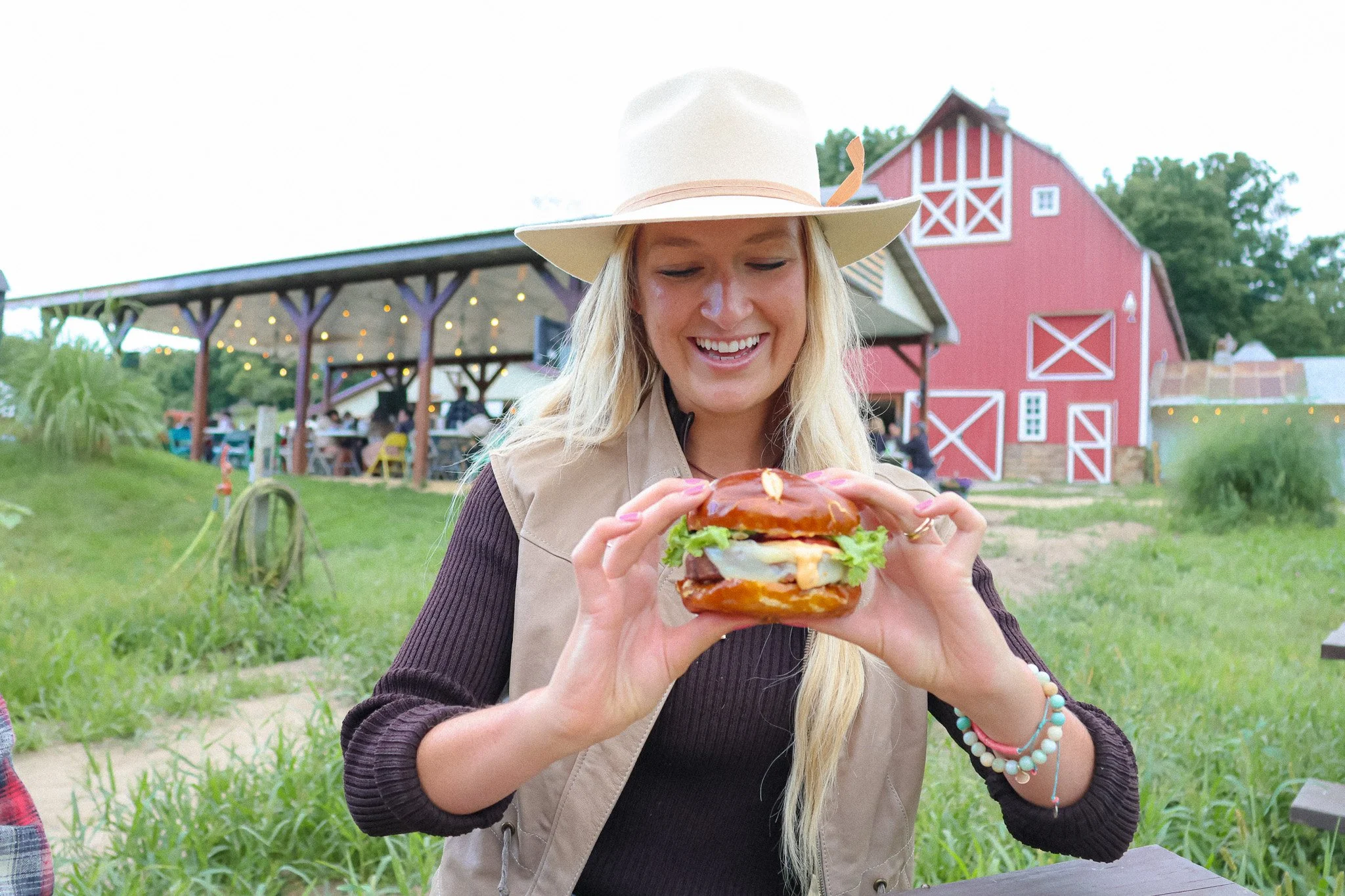 An hour and a half drive from Stillwater, MN through small towns, winding hills, and golden fields you’ll arrive at a bustling outdoor restaurant. This charming spot features 100% grass-fed beef (plus vegetarian options) and live music. It’s a taste of farm life with elevated flavors and a community vibe that feels like you’ve encountered a family dinner party.